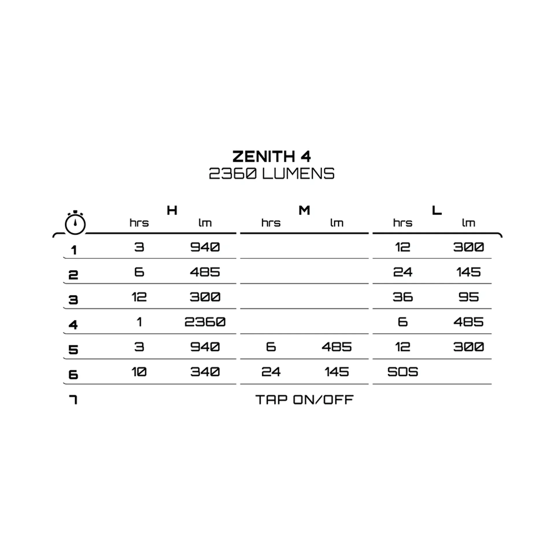 Patented circuitry within the light will reduce power to the LEDs, if they go beyond the optimum temperature, keeping the light as efficient as possible to maximise output and battery capacity. Once the light has cooled, the power is automatically restored.