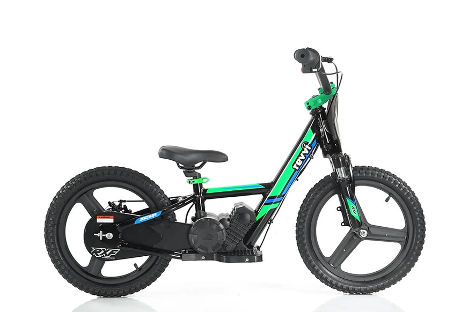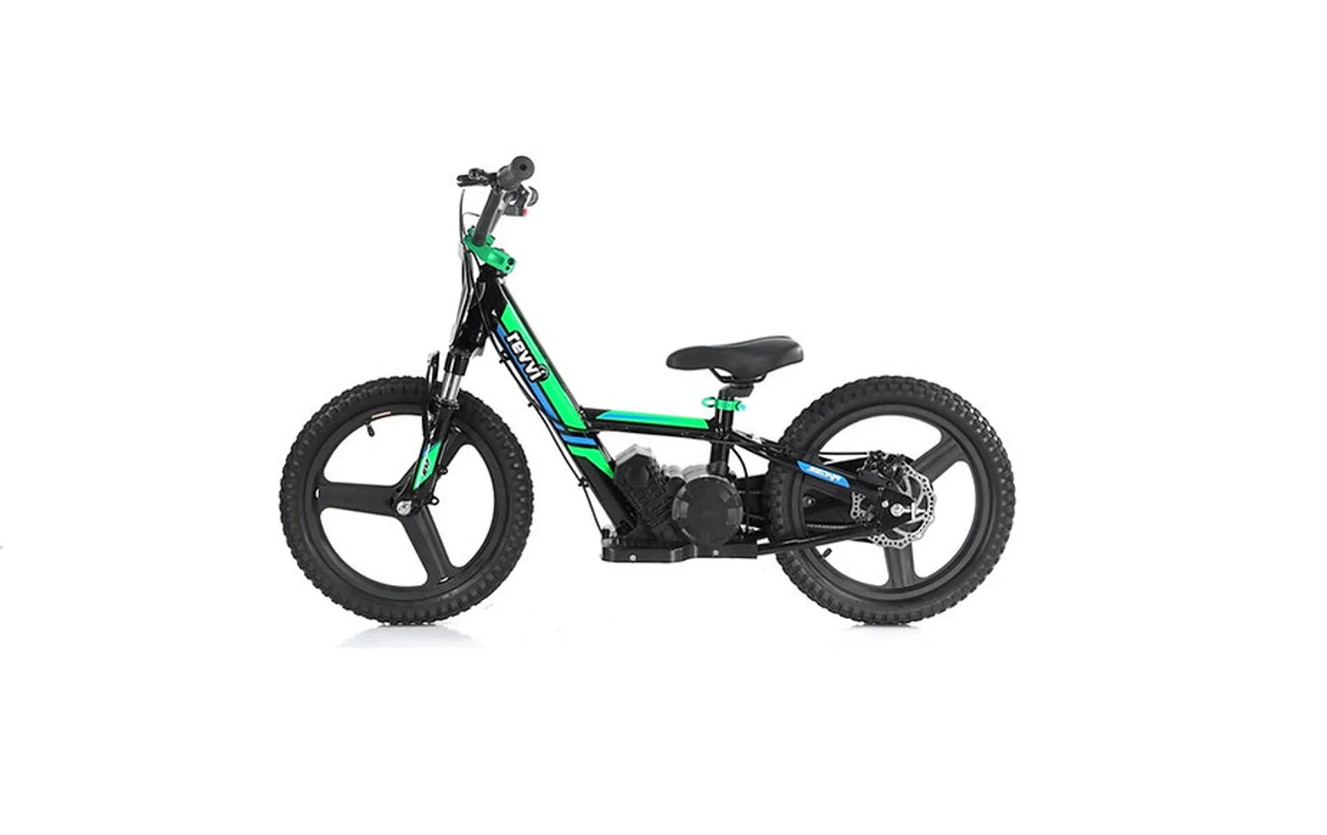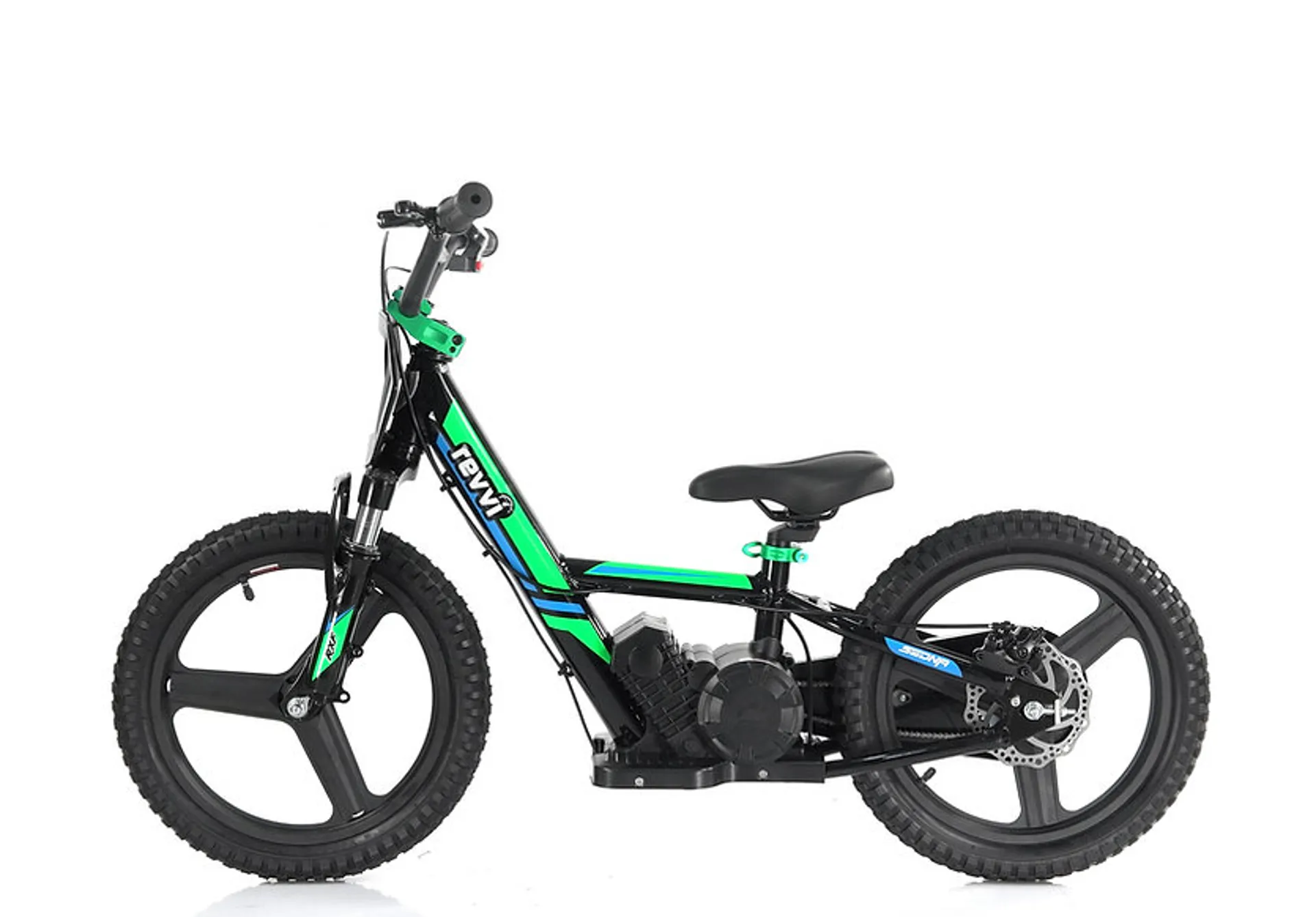 A super light electric-powered balance bike that has been specifically designed for kids, Weighing in at only 11kg's. The bike can be used as a conventional balance bike when learning to balance with its specially designed free wheel system. Then watch the rider improve and progress onto the slow speed setting (8mph) balancing on their own using the foot pegs. Perfecting their throttle control at the same time using the bikes twist throttle. Once they are confident using the slow speed setting they can then progress to the medium speed (10mph) and fast speed setting (12mph). Features hybrid rubber air filled tyres suitable for various ground types & a chain-driven motor that delivers reliable performance.The 16" Plus features the following upgrades over the standard 16" model - Front suspension, Metal wheels, rear disc brake, handlebar pad, full grip throttle, 3 speed settings, anodized handlebar, anodized seat clamp and a brushless 250w motor.